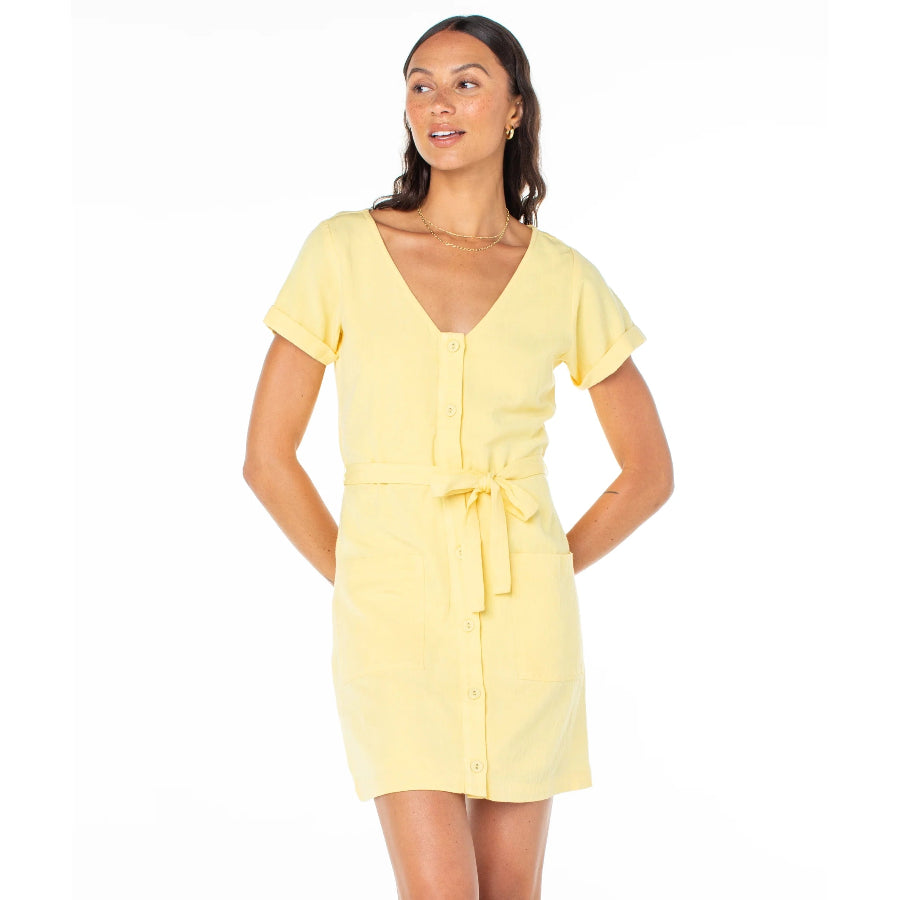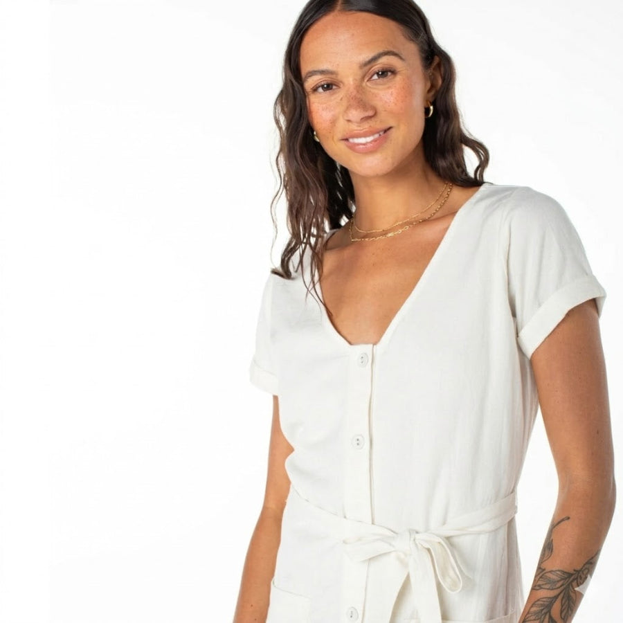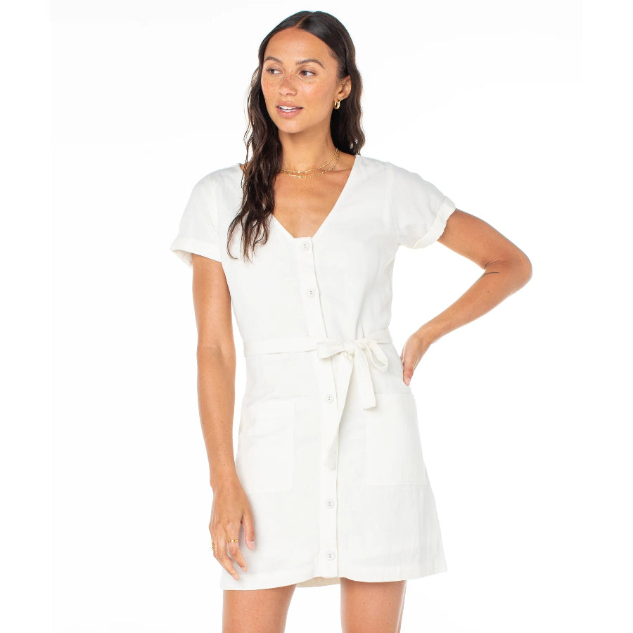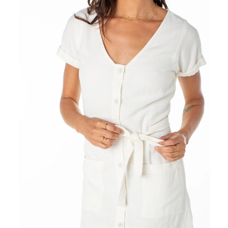 Effortless style meets all-day comfort in the Kona Mini. This elegant button-front dress features a flattering V-neckline and a waist accented with a flirty bow, creating a feminine silhouette with an easy, polished feel.