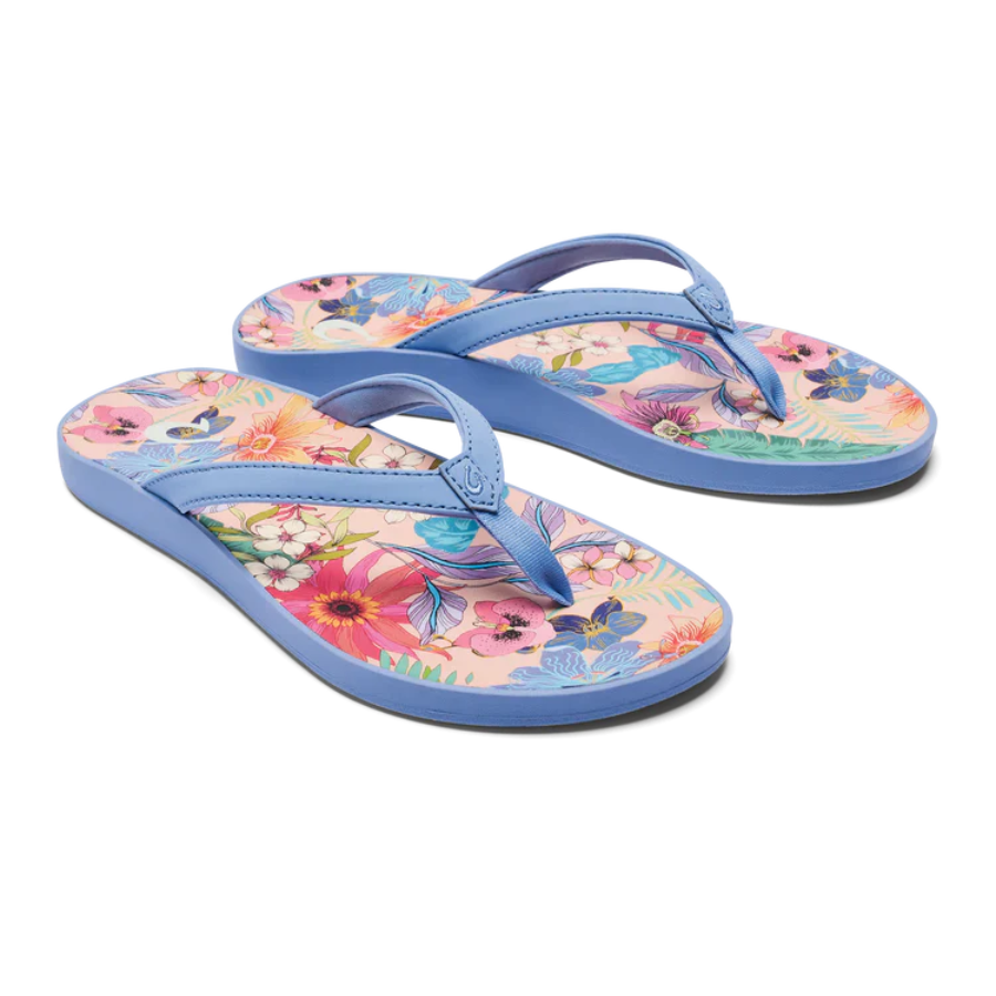 The OluKai Women's Puawe Sandals are your ultimate recovery companion. Designed with extra-puffy straps and a cushioned foam footbed, these sandals help increase circulation and reduce foot fatigue after a busy day. Water-friendly and lined with soft jersey knit, they provide luxurious comfort with every step. The anatomically contoured footbed mimics the feeling of walking on wet sand, offering natural support and all-day relief. Finished with a non-marking Wet Grip Rubber® outsole, the Puawe ensures steady traction on any surface while keeping your feet relaxed and rejuvenated.