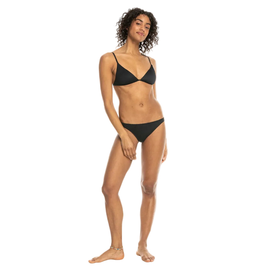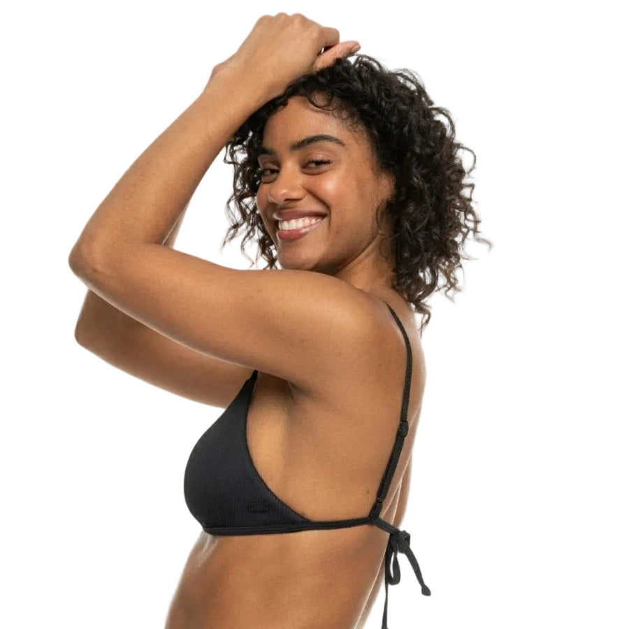 The Roxy Rib Love The Quiver Bikini Top combines effortless style with a flattering, minimal silhouette. Crafted from a soft, durable textured rib fabric made with a recycled stretch nylon blend, it offers comfort, flexibility, and long-lasting wear. Designed in a classic triangle shape with a halter neck, it provides low support and mini coverage—ideal for A/B/C cup sizes. Adjustable straps with rings and sliders, along with a tie closure, ensure a customizable fit, while removable pads offer added versatility. Seamless finishing enhances your natural curves, and ZZ stitching helps prevent the fabric from rolling for a secure feel. Finished with a signature ROXY rubber plate, this top is a sleek and confident choice for sunny days.