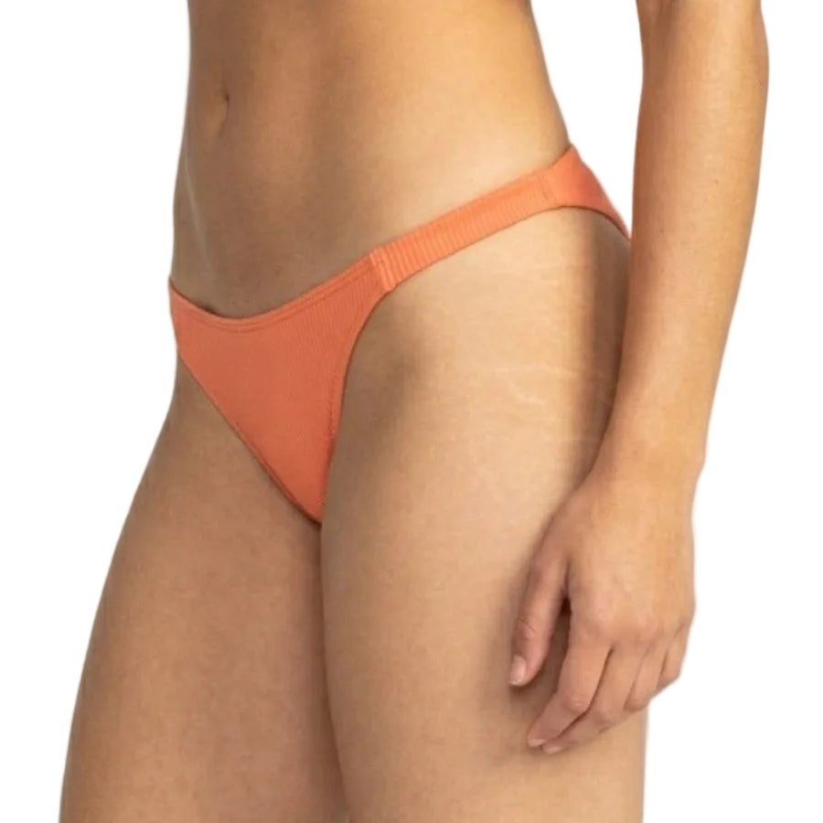 The ROXY Rib Love The Goofy Bikini Bottom blends eco-conscious design with a flattering, modern fit. Crafted from a soft yet durable textured rib fabric made of 91% recycled nylon and 9% elastane, it offers comfortable stretch and long-lasting wear. Designed with a low waist and mid-rise silhouette, it features a cheeky cut that enhances your natural curves. The seamless construction provides a smooth, second-skin feel, while ZZ stitching inside the leg openings helps prevent rolling for a secure fit. Finished with a fixed closure, this bikini bottom delivers effortless style and confidence for every beach day.