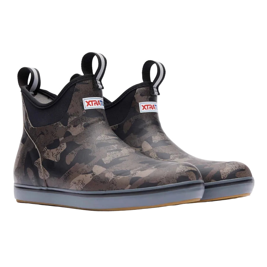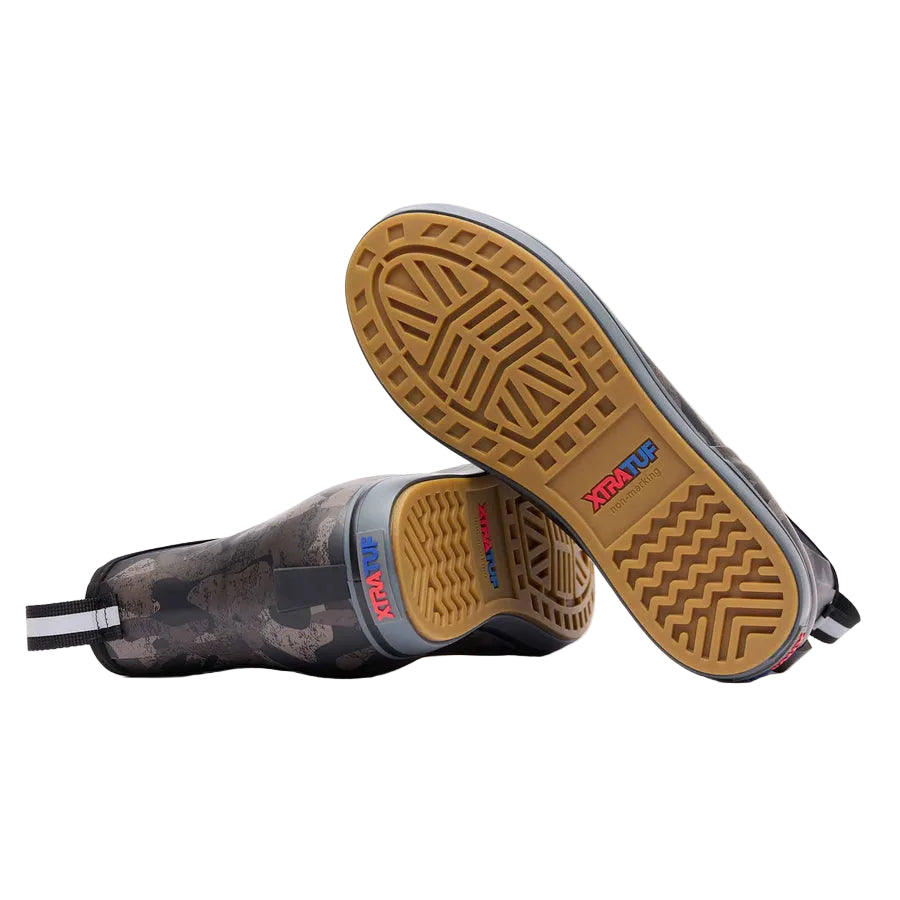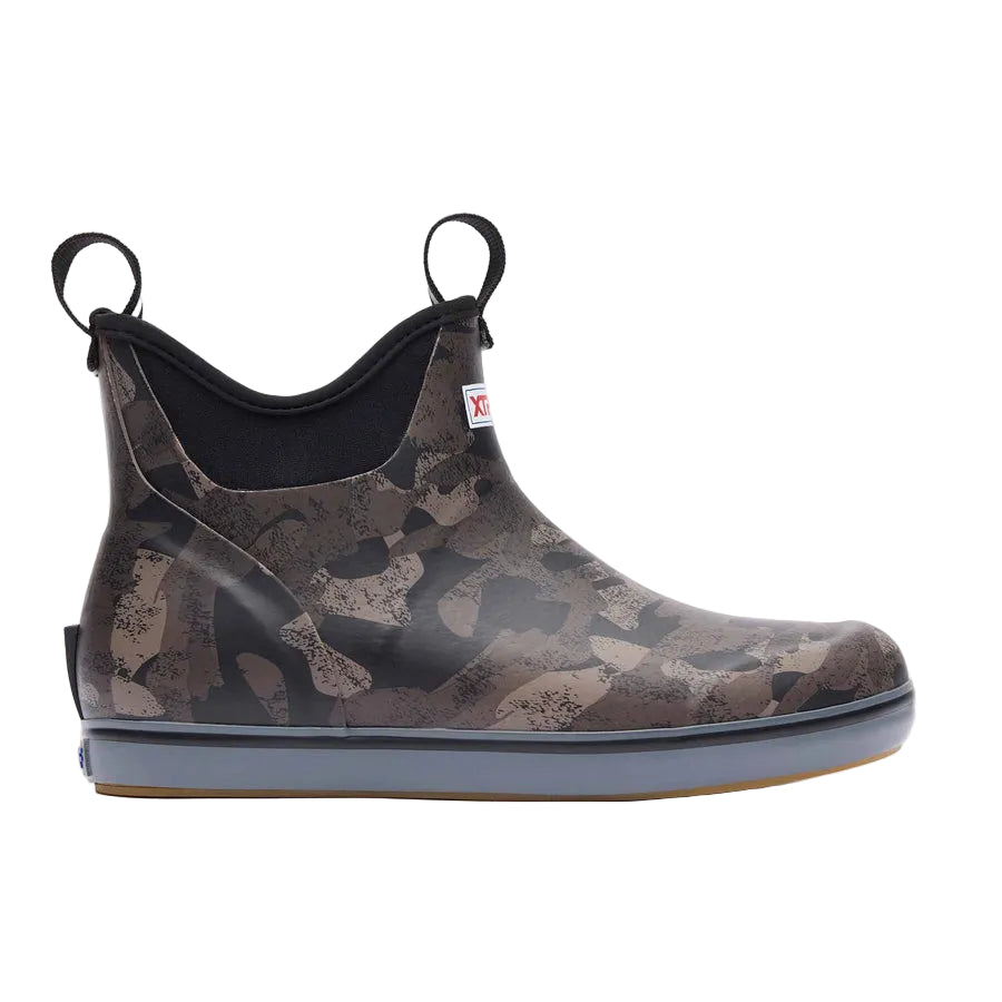 This lightweight design has the same slip-resistant Chevron outsole found in our Legacy boots. The performance ankle deck boot is the perfect boot for any on the water athlete looking for protection with slip-on-and-go styling. This version delivers performance and style with an understated black camo design.